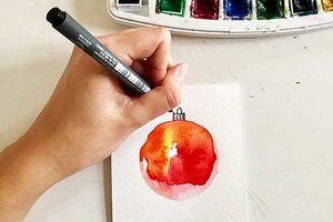 Wenn die Farbe getrocknet ist, kannst du mit einem Stift den Aufhänger der Weihnachtskugel malen.