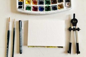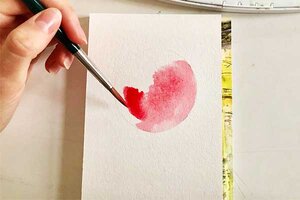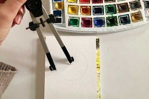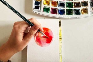 Nimm mit dem Pinsel viel Wasser auf und mal den Kreis nur mit Wasser aus. Dann kannst du Wasserfarben dazunehmen.