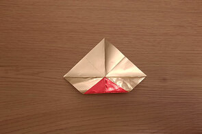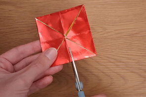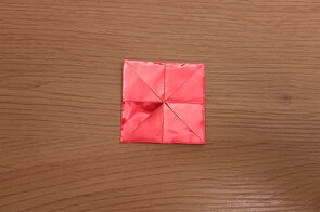Nachem ihr das Papier vorher 4 Mal gefaltet habt, klappt ihr die 4 Ecken bis zur Mitte um.