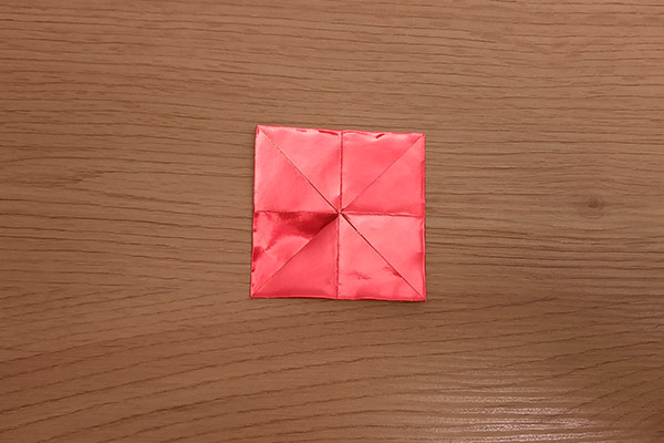 Die Faltkanten ergeben ein Kreuz in der Mitte.