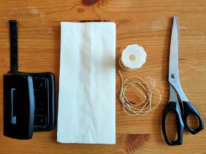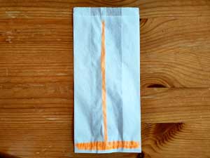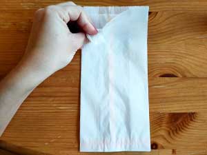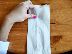 Nimm dir eine Butterbrot-Tüte und lege sie vor dich. Die Öffnung der Tüte sollte von dir weg zeigen.