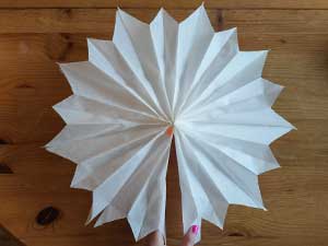 Hier erfährst du, wie man Butterbrot-Tüten in Wintersterne verwandelt.