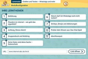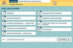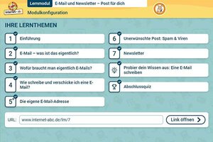 Menü eines überarbeiteten Lernmoduls; Bild: Internet-ABCNeben den drei neuen Modulen gibt es noch weitere neun Module. Ältere Lernmodule werden in den kommenden Monaten überarbeitet.