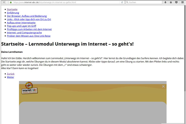 Manche Browser oder Browser-Einstellungen verhindern die richtige Darstellung der Lernmodule. Dann sieht das Modul folgendermaßen aus: