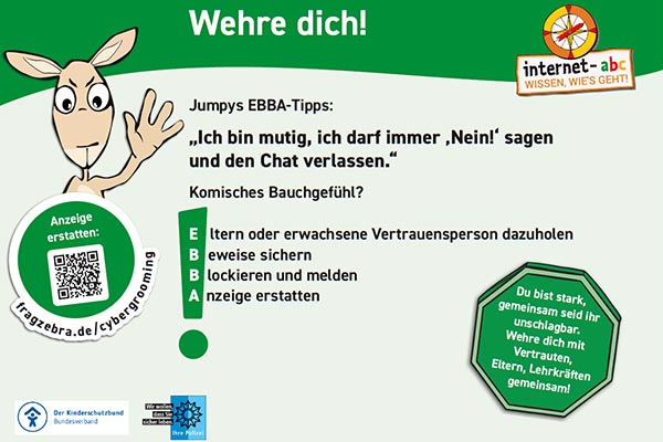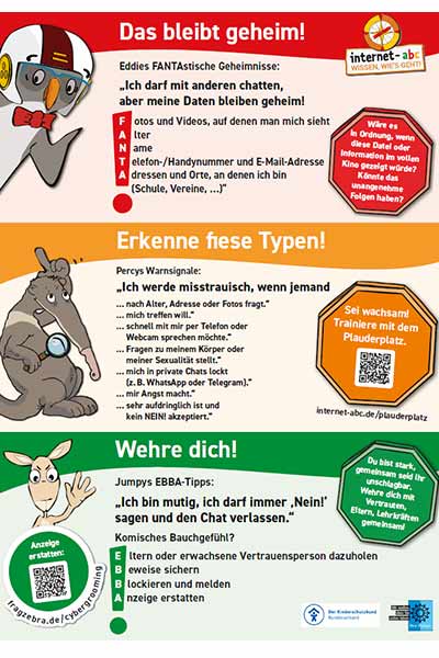 Das Poster gibt Tipps, wie sich die Schülerinnen und Schüler im Internet schützen können. Besprechen Sie die Tipps gemeinsam und ermutigen Sie die Kinder, ihre eigenen Strategien zu teilen.