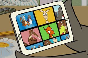 Tablet mit den Internet-ABC-Tieren; Bild: Internet-ABCErklärfilme rund um den Computer und das Internet für Kinder. Unter den Videos können Kinder Ihre Meinung oder Fragen posten.
