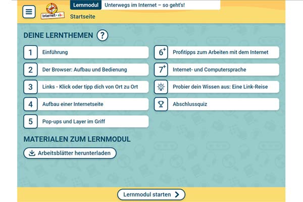 Das Lernmodul "Unterwegs im Internet - so geht's!" zeigt bzw. erklärt Schülerinnen und Schülern
