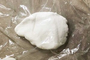1. Nimm dir etwas Modelliermasse, knete sie ein wenig durch und lege die Frischhaltefolie darüber.