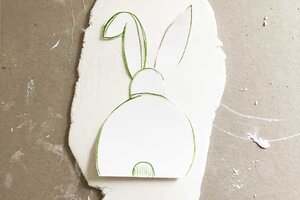 4. Schneide den Osterhasen mit einer Schere aus. Höhle ein Loch an einem Ohr zum Aufhängen aus.