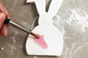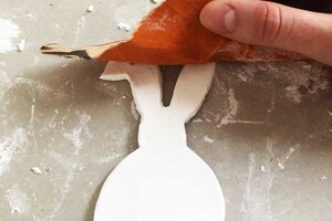 5. Die Ränder des Osterhasen kannst du mit deinem Finger und etwas Wasser glattstreichen.